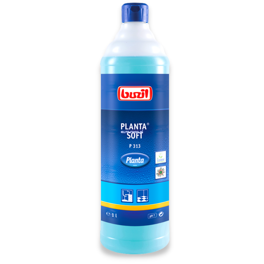 Uniwersalny, przyjazny środowisku środek do codziennego mycia materiałów, nawierzchni i posadzek odpornych na działane wody, Buzil P313 Planta® Soft jest przeznaczony do nawierzchni szklanych i z tworzywa sztucznego a także do polerowanych na połysk kamieni błyszczących płytek podłogowych. Posiadający europejskie świadectwo dla przemysłu spożywczego, Buzil P313 Planta® Soft znajduje zastosowanie w obszarze spożywczym, gastronomia, kuchnie. Buzil P 313 Planta® Soft ma skuteczne działanie czyszczące, wysycha szybko nie pozostawiając smug i nadaje wysoki połysk czyszczonym powierzchniom. pH: 7 dozowanie: mycie ręczne: 20-50 ml/10 l wody automat: 50-100ml/10l wody